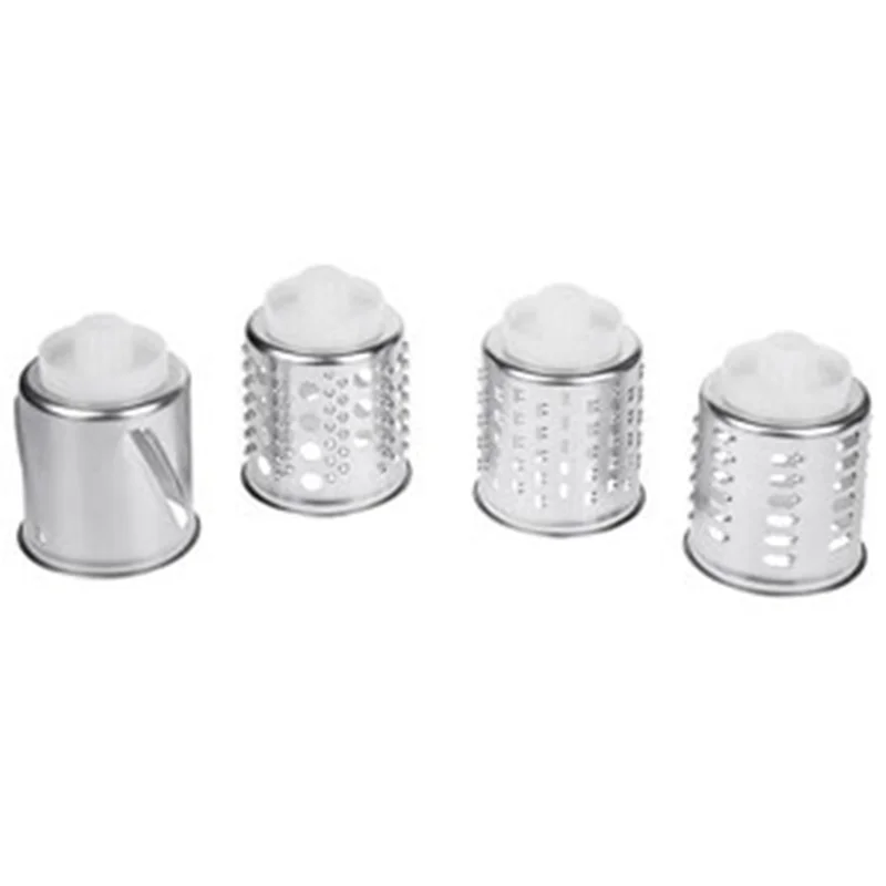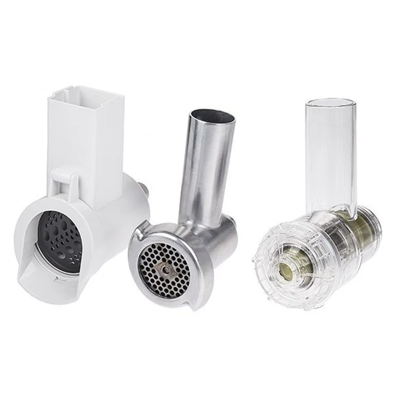 آب ميوه گيري: فيلتر جدا كننده آب ميوه، خردكن و مخلوط كن، آب گيري ميوه هاي مختلف: ليموترش، انار، هويج، سيب، گلابي، كيوي، انگور، غوره و .....، خرد كردن انواع دانه هاي روغني مانند گردو، تهيه انواع پوره از سيب زميني، شلغم، سويا، بادمجان، انواع حبوبات پخته شده به صورت مجزا، خرد كردن پياز و سيب زميني خام به صورت مجزا يا مخلوط، خرد و مخلوط نمودن انواع غلات و حبوبات پخته، امكان ايجاد نمودن فرم هاي مختلف ماكاروني و رشته، داراي ظرف جمع آوري آب ميوه