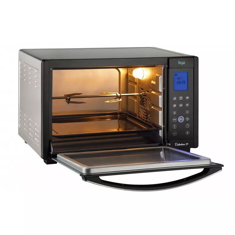 ونتوستر «سایا» (Saya) مدل «Vulcan 28» یکی از محصولات کاربردی ساخت این شرکت است. این دستگاه دارای المنت های 1600 وات است و از گنجایش داخلی 28 لیتر بهره میبرد و با توجه به ظرفیت متوسط خود برای استفادهی شخصی و خانواده های متوسط مناسب است. درِ آونتوستر Vulcan 28 از جنس شیشهی دوجداره و عایق حرارت ساخته شده است. پنل تنظیمات دستگاه در سمت راست قرار گرفته و شامل چهار پیچ ولومی است. از طریق این پنل امکان تنظیم دمای کارکرد دستگاه تا حداکثر 230 درجهی سانتیگراد وجود دارد. چهار المنت حرارتی میلهای برای این مدل در نظر گرفته شده که در بالا و پایین محفظهی داخلی آونتوستر قرار گرفتهاند؛ همچنین وجود یک تایمر 60دقیقهای کمک میکند که با خیال راحت غذا را درون آونتوستر قرار دهید و به کارهای خود برسید. دستگاه Vulcan 28 دارای قابلیت جوجهگردان و فن کانوکشن است و برای ایمنی، دو دستگیرهی مخصوص جهت جابهجا کردن سینی طبخ و سیخ جوجهگردان در نظر گرفته شده است. در انتهای زمان تعیینشده زنگ هشدار تایمر به صدا در خواهد آمد و شما را از اتمام پخت آگاه میکند. سایا تولید و عرضه کننده لوازم خانگی است که با ارائهی محصولات باکیفیت و زیبا مشتریان زیادی را به سمت خود کشانده است.